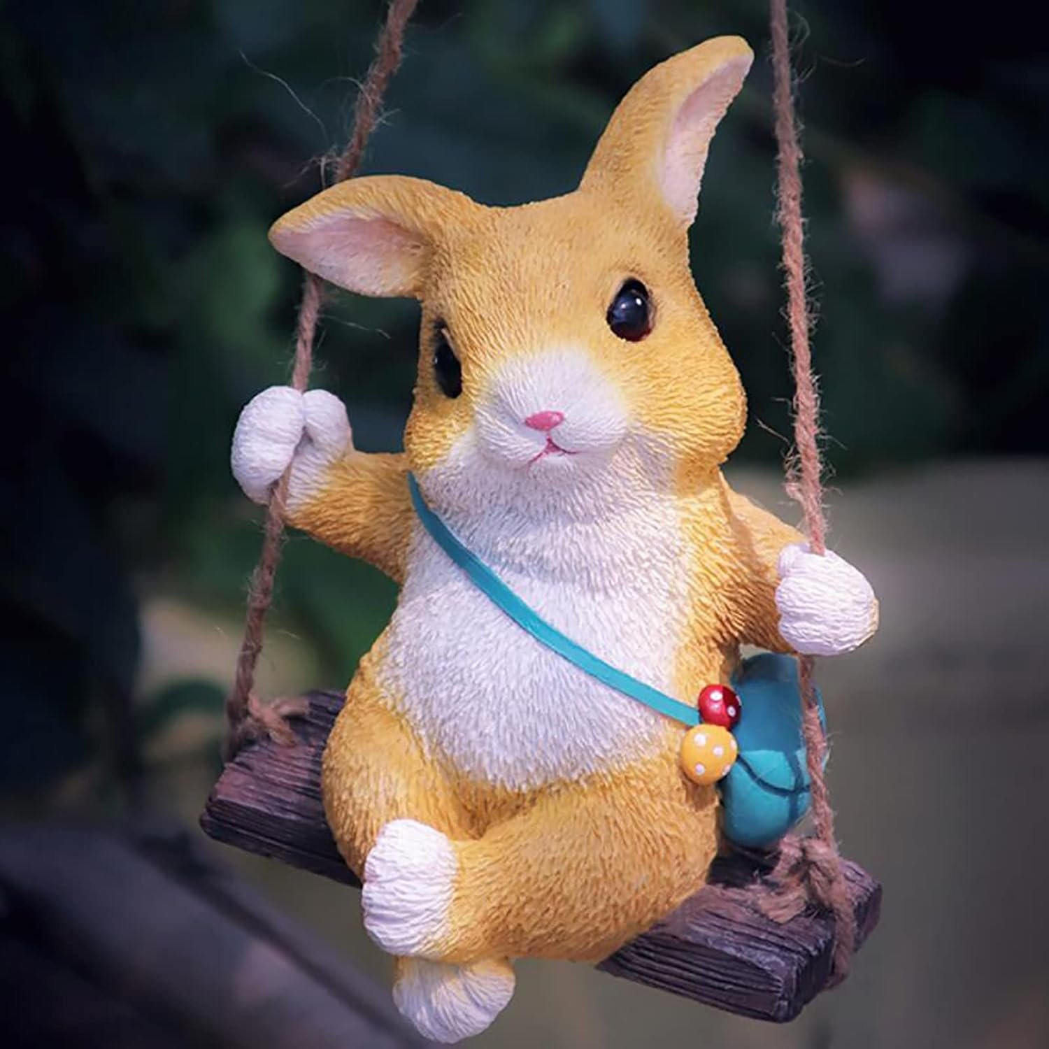 Bring Whimsy to Your World with this Adorable Swinging Bunny! Meet the most charming resident of your garden! This Adorable Bunny Rabbit on a Swing Statue is sculpted in a joyful pose, guaranteed to bring a smile to anyone who sees it. It?s the perfect touch of whimsical decor for any outdoor space or cozy indoor nook. The figurine is beautifully cast in durable polyresin, capturing the softness of the rabbit’s fur and the rustic look of the swing platform and rope. The bright yellow-orange and white coloring ensures it stands out beautifully against green foliage or dark wood. Designed for indoor and outdoor use, this bunny comes ready to hang with its sturdy rope. Suspend it from your patio, deck, garden tree, or use it to brighten up a child’s bedroom or a kitchen window. It makes an excellent Easter or Housewarming Gift for gardeners and rabbit lovers alike, adding instant personality and cheer!