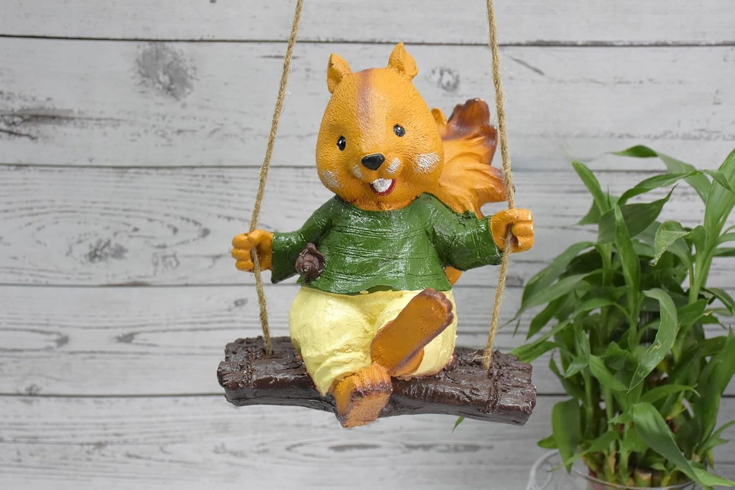 Cute Squirrel Garden Statue on Swing | Hanging Resin Animal Figurine for Patio, Tree, Yard, Balcony Decor | Outdoor & Indoor