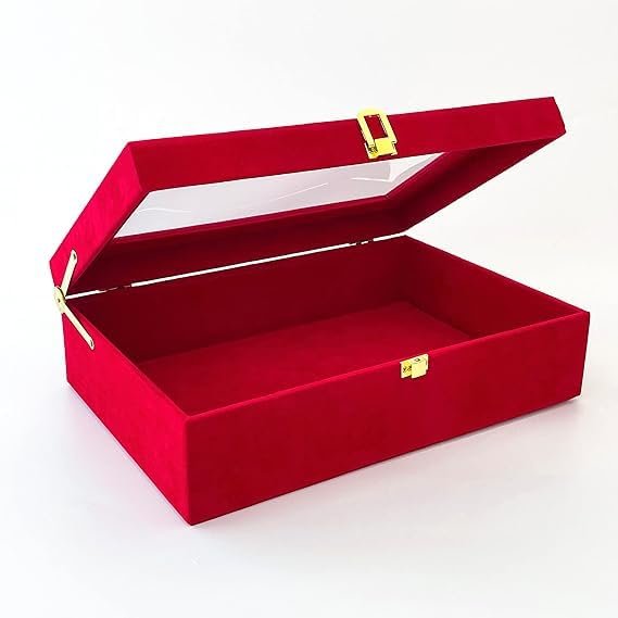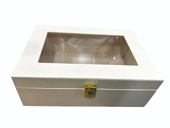 This multipurpose storage box with a transparent lid is the perfect blend of elegance and practicality. Featuring a sleek design with a clear window, this box allows you to showcase or access your stored items effortlessly. The secure gold-tone clasp ensures safety while enhancing the aesthetic appeal. Whether you’re organizing jewelry, watches, accessories, or gifting someone special, this storage box is a versatile solution for home, office, or retail use.